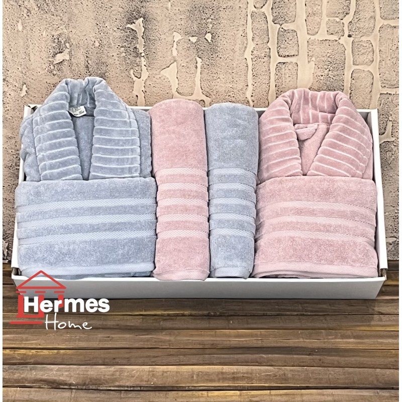 سرویس حوله پنبه ژاکارد دونفره زبرا مدل: (ZEBRA (gri-gul kurusu