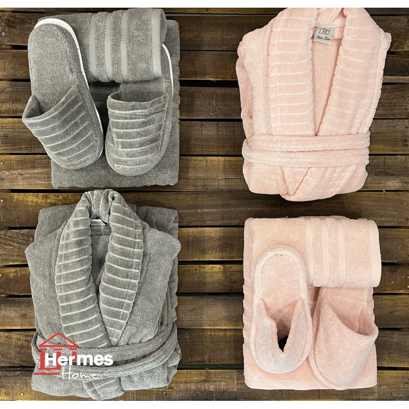 • این ست دارای 2 عدد حوله استخری به ابعاد 130x70 سانتی متر، 2 عدد حوله دستی به ابعاد 60X40 سانتی متر، 2 جفت دمپایی حوله ایی میباشد.