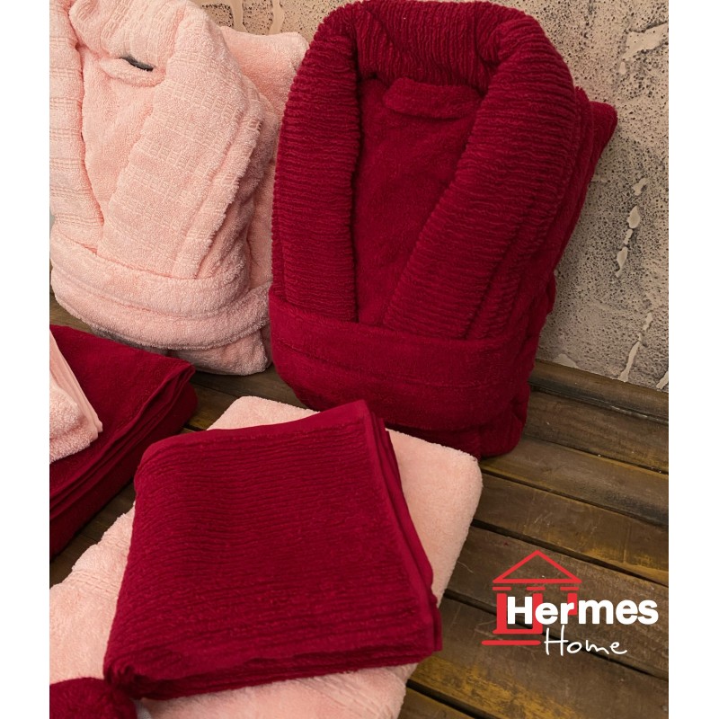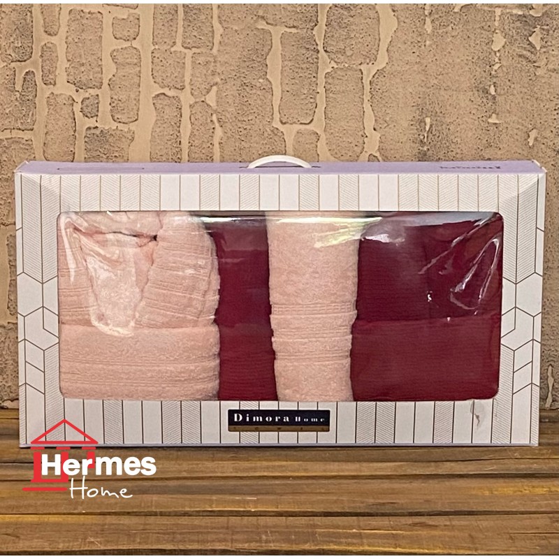حوله|سرویس حوله پنبه ژاکارد دونفره مدل: DIMORA (bordo-pembe)