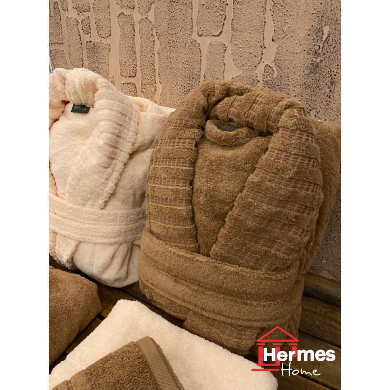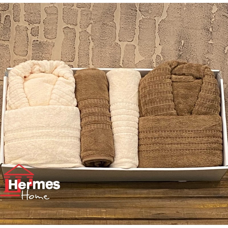 سرویس حوله پنبه ژاکارد دونفره مدل: DIMORA (kahve-krem)
