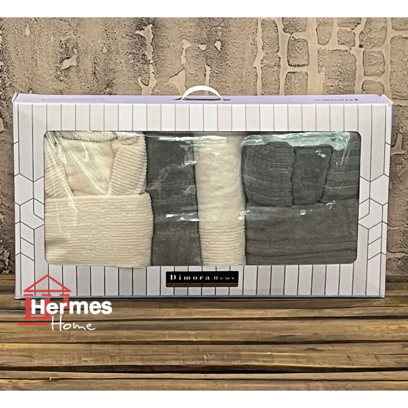 حوله|سرویس حوله پنبه ژاکارد دونفره مدل: DIMORA (haki-krem)